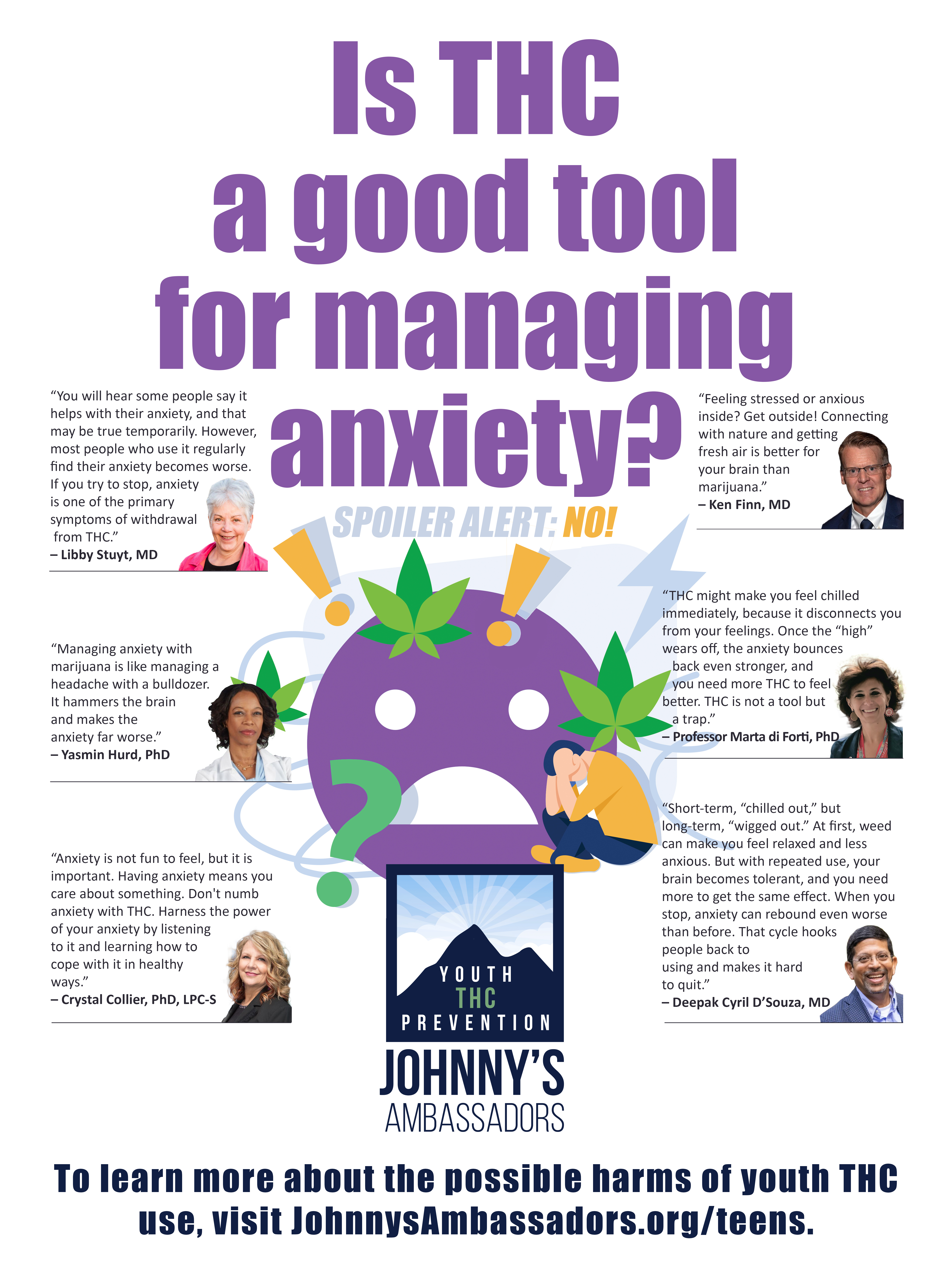 The #1 place students vape is the bathroom. So we created this series of posters you can laminate and tape to the back of the bathroom stall doors! Or hang in your classroom or hallways. These are commonly-asked questions from teens, answered by our Scientific Advisory Board. These are designed to be printed as 18 x 24 posters.